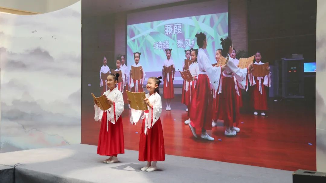 五山小学的同学现场吟诵《诗经》名篇《蒹葭》