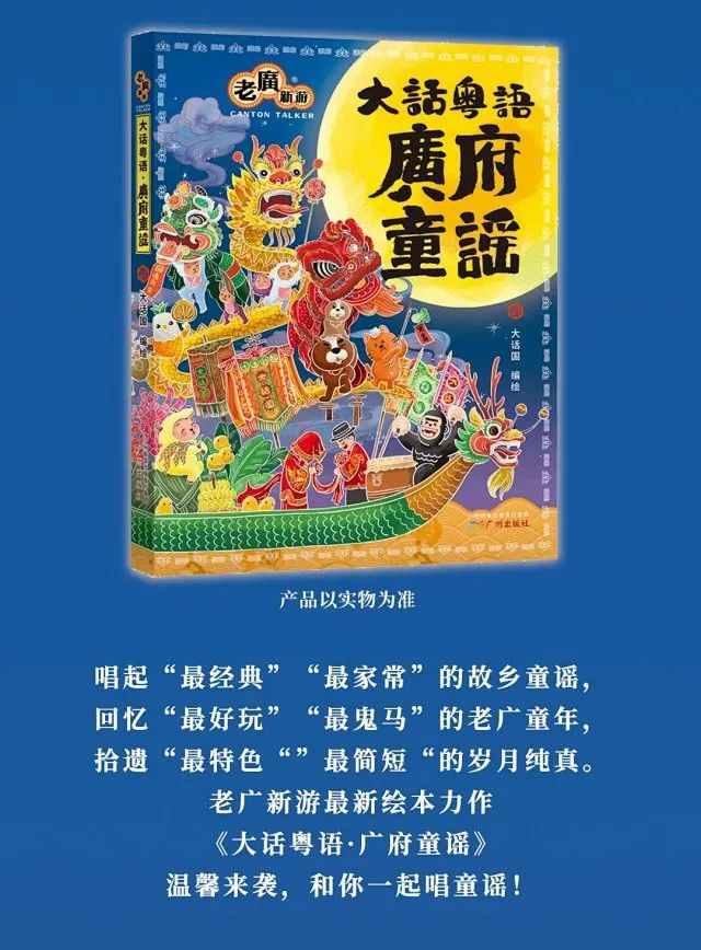 此次带来的《大话粤语·广府童谣》搜集整理最具代表性的广府童谣,通过“最经典”“最鬼马”“最好玩”“最家常”“最特色”“最简短”六个篇章进行展现。每首童谣将配有手绘插画,对童谣中的风土人情、方言俚语进行文字注释解说,整体风格趣致活泼又兼具知识性。对小读者来说有较强的可读性,对热爱广府文化的读者来说具有收藏价值。