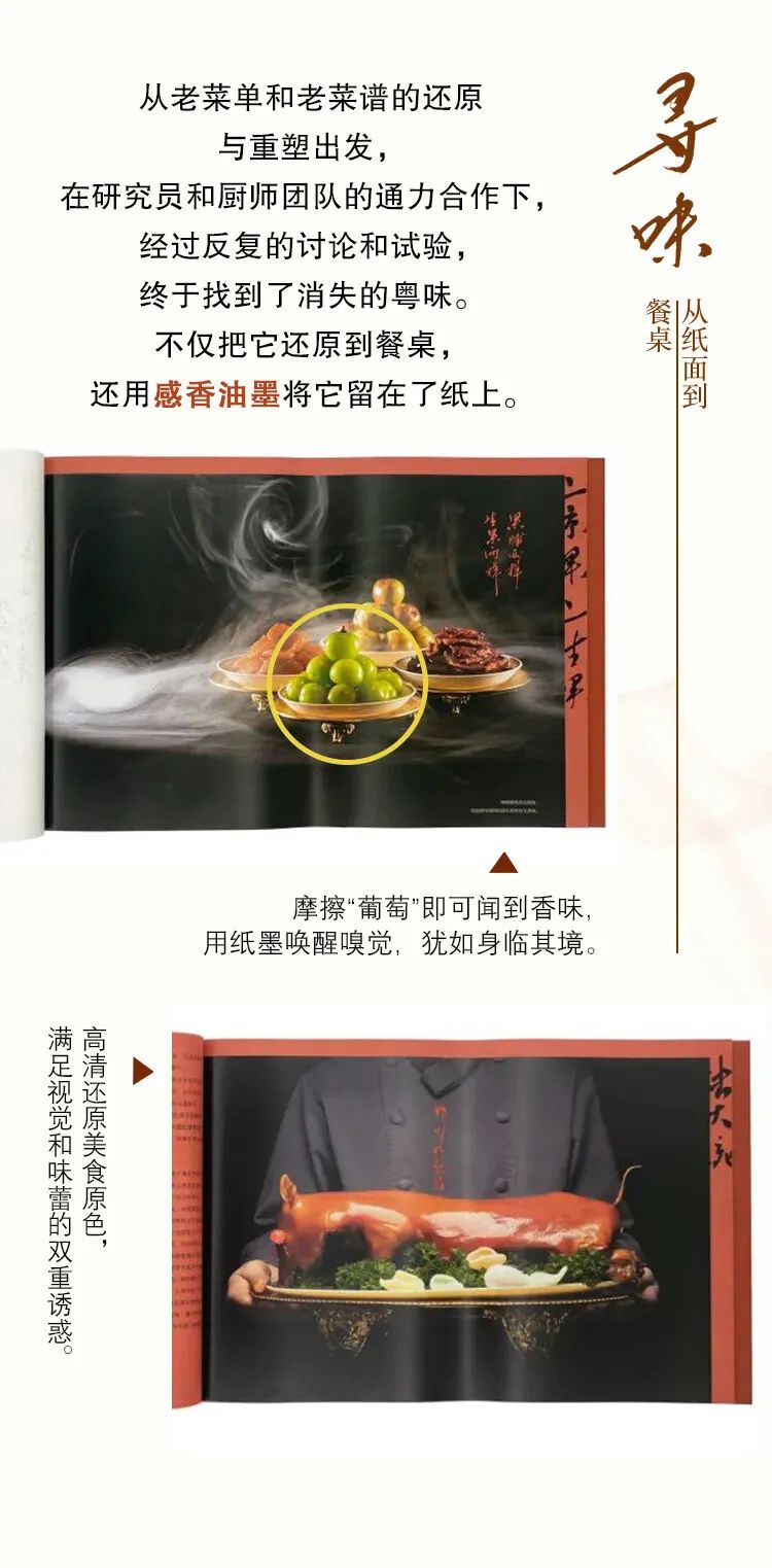 从项目的起源到具体的还原过程,从两千年粤菜历史的溯源到民国粤菜的辉煌,由文物菜单、菜谱上的历史信息映照近代广州社会生活的侧影,除了让更多人领略传统粤菜的精髓,也在一饭一蔬之间,展示沉淀凝结的广州城市性格和人文精神。